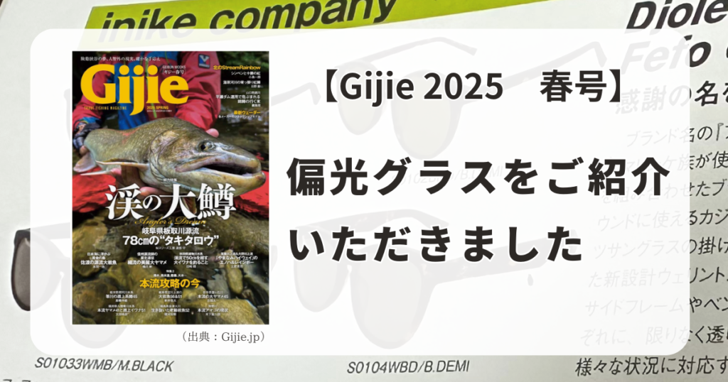 Gijie 2025 春号(芸文社)『注目の新製品ページ』にて、弊社偏光グラスをご紹介いただきました。本格派の愛読書へのご掲載にスタッフ一同感謝の気持ちでいっぱいです。アイニケカンパニーの仲間、橋爪幹氏の文章と美しい写真も掲載されています。シーズン... -